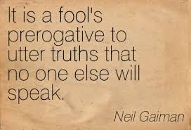 I have learned that in this world you must find a balance between being able to say what you want and being credible. My unrequited love for freedom will always have me play the fool. What many people don’t often see is the freedom that comes with insanity and foolishness. We as a society tend to confuse foolishness and insanity with stupidity. The difference between stupidity and foolishness is that one is often by choice, while the other is a hidden deformity. You have to be a little foolish to be able to get away with telling the truth. Thus I have perfected the part of the fool. I have given up some of my credibility for my freedom.  Knowledge often comes with the price of insanity and being able to share your knowledge often comes with the price of being labeled a fool. Thus, you lose credibility.  But it’s got me wondering, what is the point of being right if no one believes you?